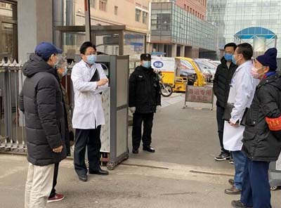 北京时代科安保安服务有限公司董事长张传桥多次带领相关人员到北医三院项目部慰问、检查抗疫工作。为保安队发放口罩、护目镜、药品等,对一线员工表示慰问,要求项目部班、队长在工作中一定要注重个人防护,保护好自己,坚决带头协助医院做好抗疫工作。